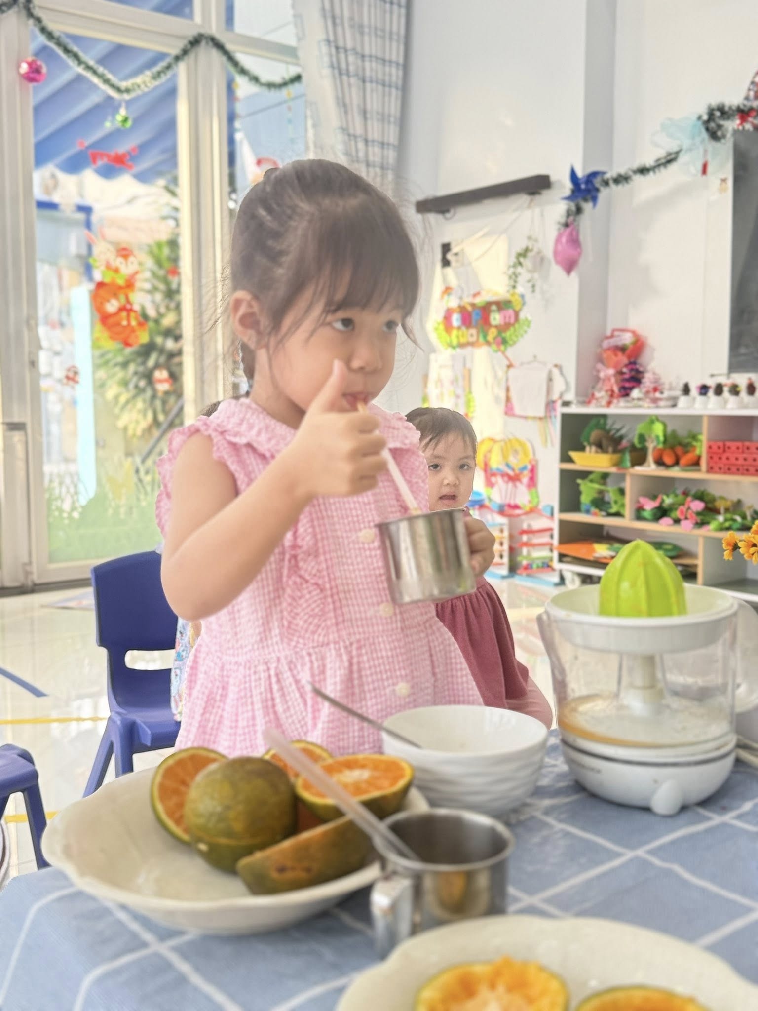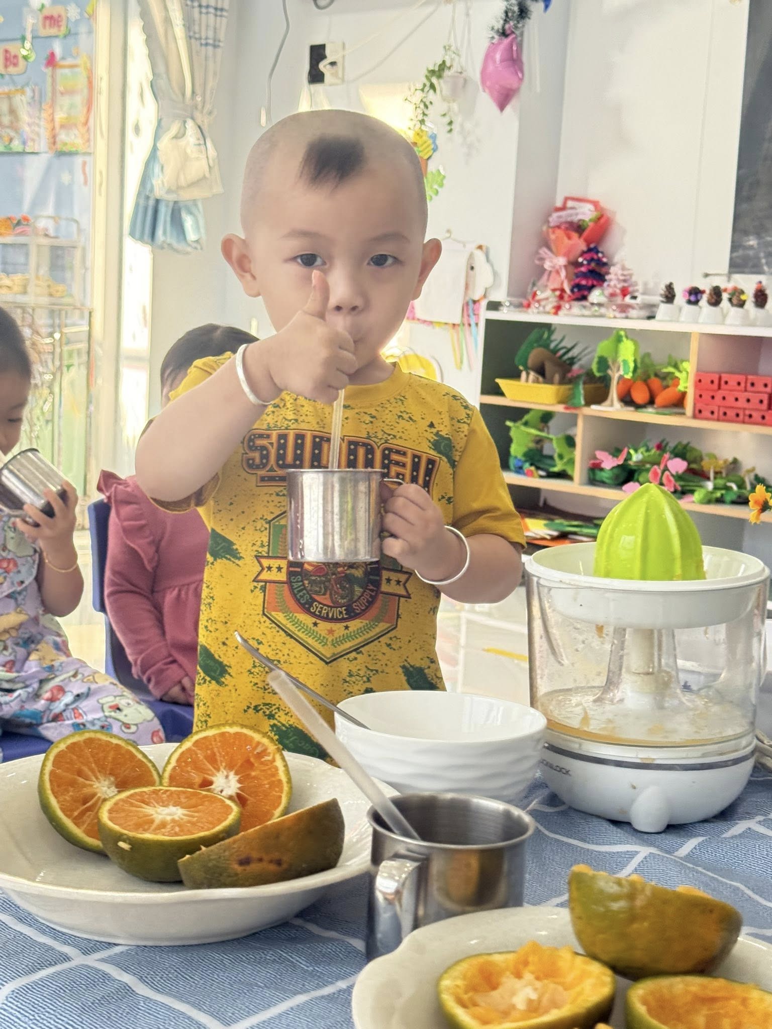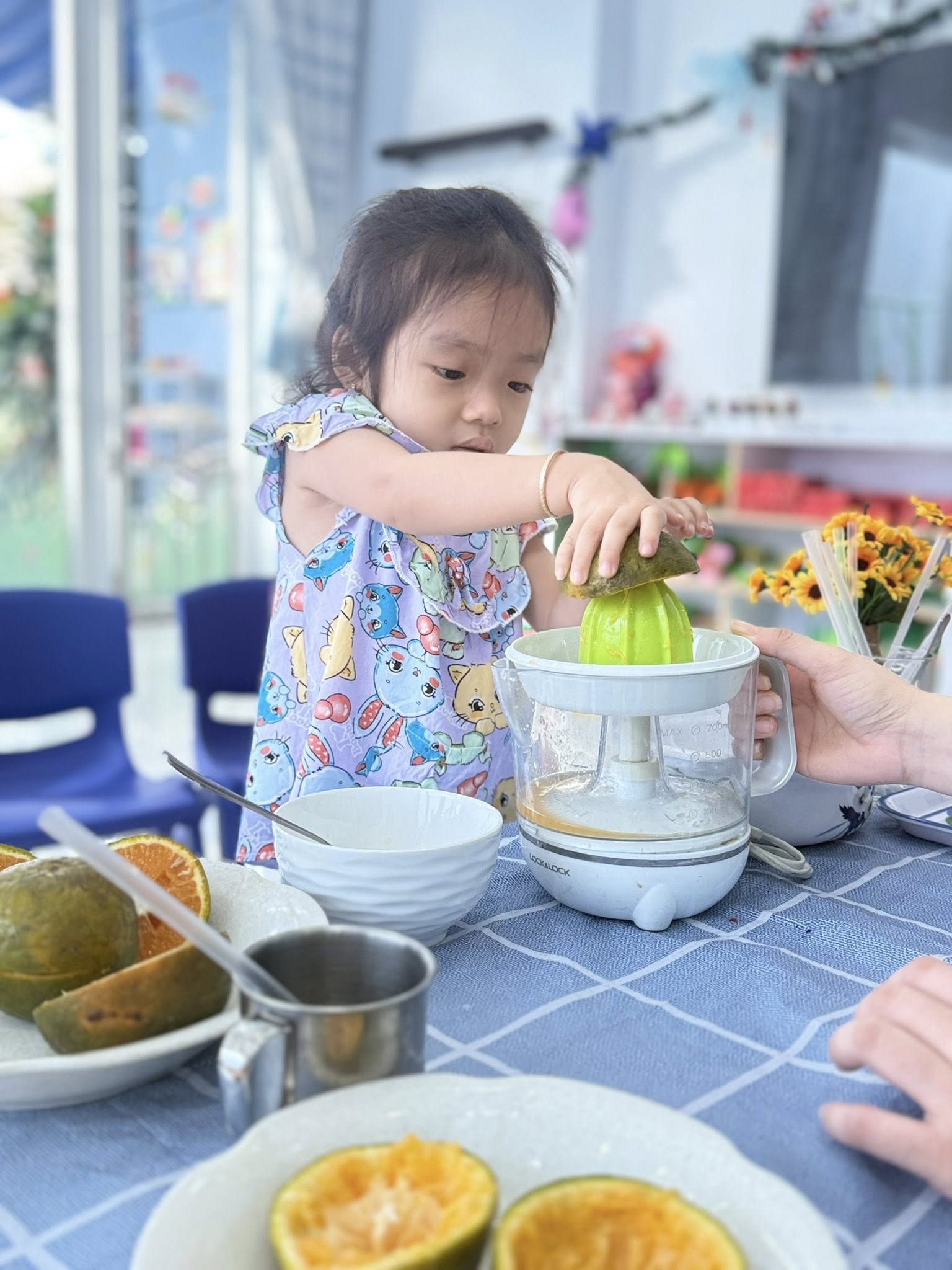 Tại Mầm non Little Angel, chúng tôi tin rằng mỗi hoạt động hằng ngày đều là một bài học quý giá. Hoạt động vắt nước cam là một phần trong chương trình phát triển kỹ năng tự phục vụ - một trong những trụ cột của phương pháp giáo dục sớm mà nhà trường đang áp dụng.